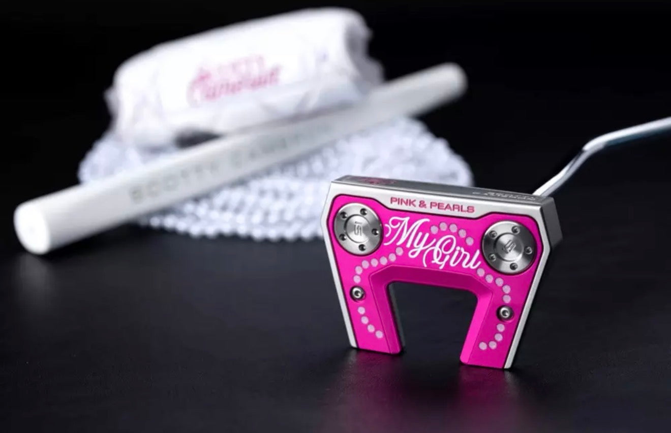 2025 MY GIRL LIMITED — PINK & PEARLS Like a Hollywood star premiering on the red carpet, this year’s limited release Scotty Cameron My Girl “Pink & Pearls” putter ushers in a prototype 34-inch Phantom 5 design that demonstrates how a drop-dead gorgeous putter can also be a precision-milled masterpiece. The Pink & Pearls theme carries through every aspect of Scotty’s 24th unveiling of this very special model, a compact mallet crafted from solid 303 stainless steel and 6061 aircraft grade aluminum as a one-of-kind showstopper. With a soft milled 303 stainless steel full face insert secured with enhanced vibration damping technology and machine screws recessed in deeper cavity bombs, this custom Phantom includes never-seen-before features like the refined MG monograms engraved on the face and into the scalloped milling of the bright pink anodized aluminum sole component, as well as the pearlized white paintfill exemplifying the glamorous aesthetic of...